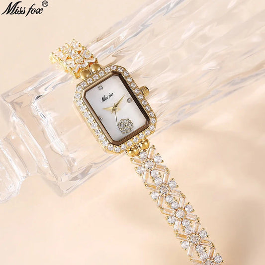 Fashion Sophisticated Small Dial Quartz Watch Diamond Inlay Stainless Steel Square Quartz Watch for Women